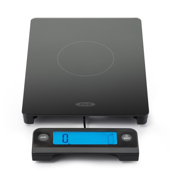 Uses four aaa batteries, included. Food scale is not available for sale online. I didn't, and when i glued the facepiece back on at the. Oxo 11212400 good grips 6 lb precision coffee scale with timer,black,one size. Compact and convenient, the oxo good grips stainless steel scale is ideal for weighing perfectly measured portions and ingredients.